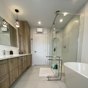 Section Salles de BainSpécialisé dans la création et la rénovation de salles de bain neuves haut de gamme, Groupe Signature redéfinit les standards du confort et du prestige résidentiel au Québec. Chaque projet est conçu comme une œuvre unique, où la plomberie de précision rencontre le design sur mesure. Notre équipe d’experts allie innovation, qualité des matériaux et souci du détail pour livrer des espaces élégants, durables et intemporels.
